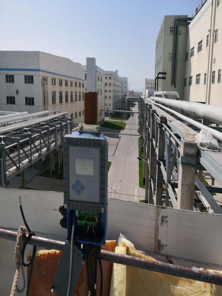 由于該管線已經(jīng)鋪設(shè)完畢,沒有預(yù)留流量計(jì)安裝空間,且該管線附件還有很多平行管線,安裝空間有限,且該管線位于樓頂需要高空作業(yè),故本項(xiàng)目選用插入式超聲波流量計(jì)。